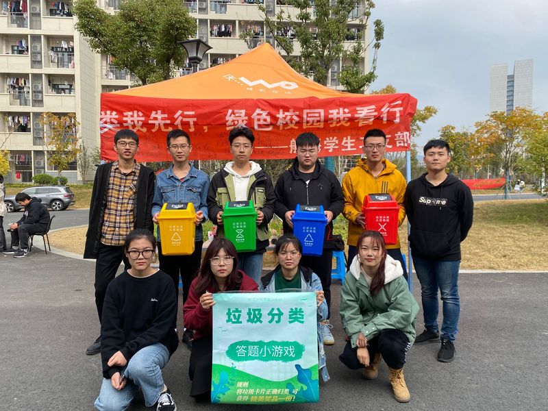 学生二支部于长山校区开展了“垃圾分类我先行,绿色校园我看行”的环保宣传活动。