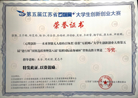 互联网+大学生创新创业大赛第五届“建行杯”国赛选拔赛暨第八届“花桥国际商务城杯”省赛“高教主赛道”赛道二等奖;