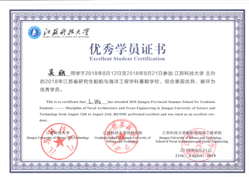 江苏省研究生船舶与海洋工程暑期学校优秀学员;