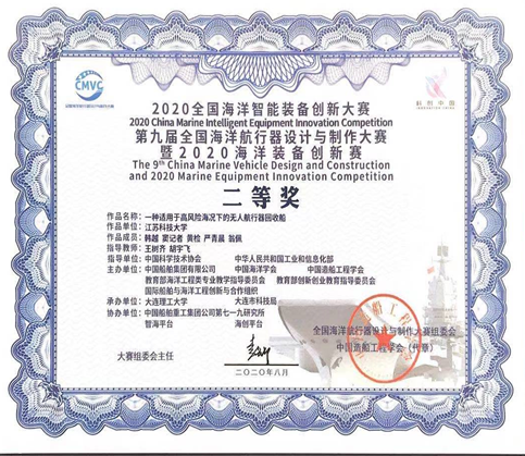 第九届全国海洋航行器设计与制作大赛一等奖;