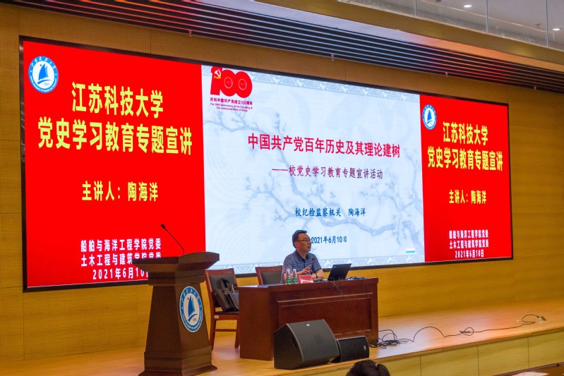 陶海洋以“中国共产党百年历史及其理论建树”为主题,以党的重要历史阶段为主线,围绕习近平总书记在党史学习教育动员大会上发表的重要讲话精神,从回顾中国共产党百年历史的意义、中国共产党百年历史的理论建树、习近平新时代中国特色社会主义思想、党员干部认真开展党史学习教育四个方面展开,强调“学史明理、学史增信、学史崇德、学史力行”的重要性。