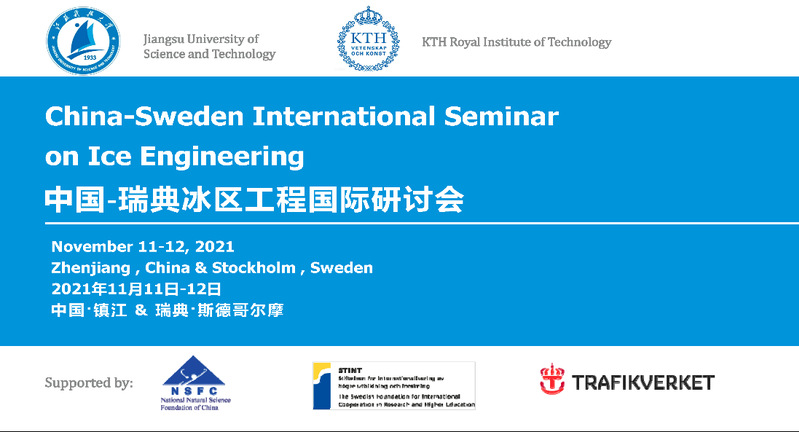 近日,由中国国家自然女同性恋做爱基金委(NSFC)、瑞典研究与高等教育国际合作基金会(STINT)和瑞典交通部 (TRAFIKVERKET)联合资助的“中国-瑞典冰区工程国际研讨会”(China-Sweden International Seminar on Ice Engineering)于2021年11月11日至12日在江苏镇江和瑞典斯德哥尔摩两地同步举行。