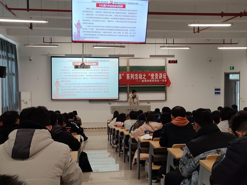 为不断加强群众联系,增强服务实效,12月1日下午,本科生一支部开展我为群众办实事系列活动之党员讲坛,贾真玉同志担任主讲,支部党员以及2020级船舶与海洋工程专业全体同学参加。