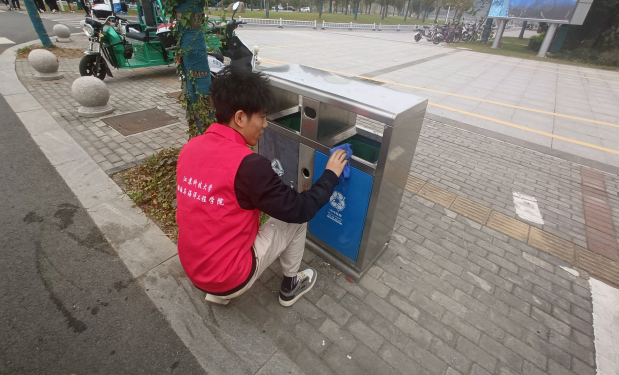 一粥一饭当思来之不易,半丝半缕恒念物力维艰。活动过程中,同学们积极性很高,到了深秋季节,校园的道路上便会不知不觉堆起一层层的落叶,同学们弯腰拾起的不仅仅是道路和草地上的杂物,也抓住这秋天的逝去。暖阳当空照,照在同学们辛勤劳动的脸颊,清扫校园不仅是锻炼同学们的劳动力,也是创造干净校园的一份努力。护栏旁是同学们精心擦拭的模样,路口凸面镜中映着一张张朝气的脸庞,同学们相互配合,分工明确,各司其职。