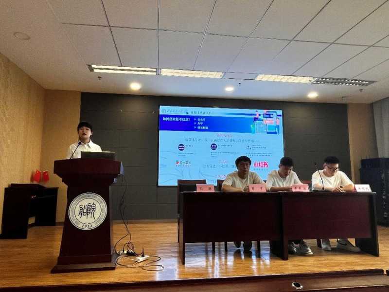 李辰寅同学分享了报考的条件及注意相关事项,随后向大家介绍了公务员考试笔试技巧,包括如何快速阅读、如何准确把握题目重点、如何提高笔试成绩等。他指出,要在学习过程中找到最适合自己的做题顺序。他强调在不确定的情况可以向相关部门进行电话咨询以免错过机会。