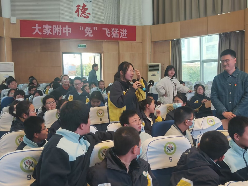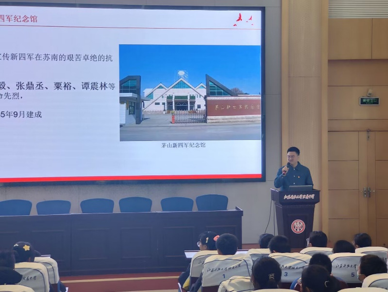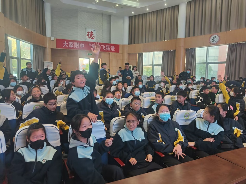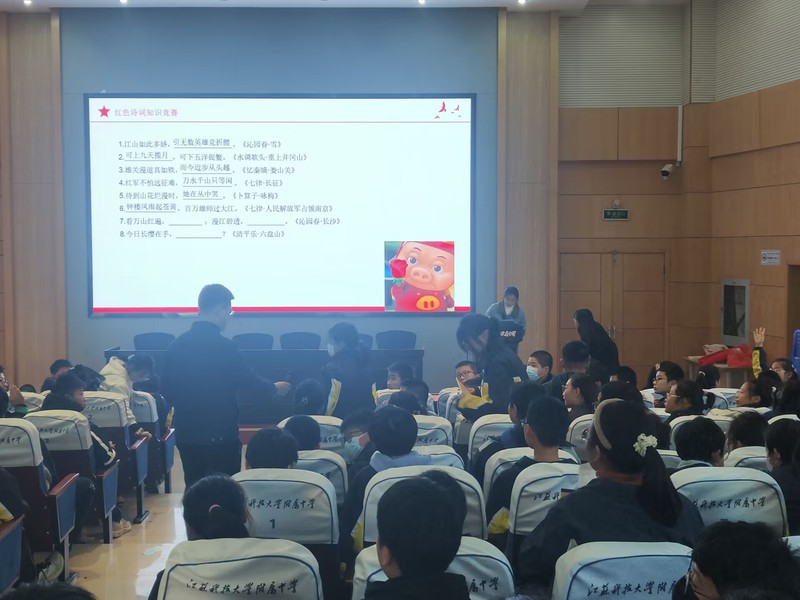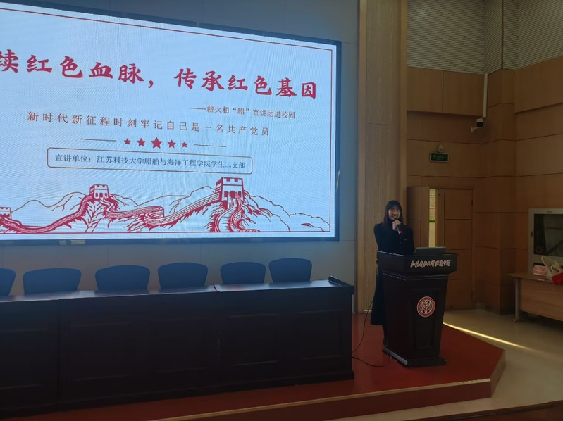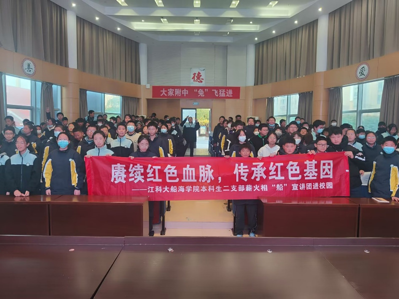为加强镇江红色文化融入大中小学思政一体化建设,引领青少年学习党的光辉历史,赓续红色精神血脉,厚植爱党爱国爱社会主义情怀。12月8日下午,江苏科技大学女同性恋做爱 本科生学生二支部“薪火相‘船’宣讲团”走进镇江市江苏科技大学附属中学,开展主题为“传承红色基因,培育时代新人”的宣讲活动,共有170名少先队员参加此次活动,活动由支部书记黄妍主持。