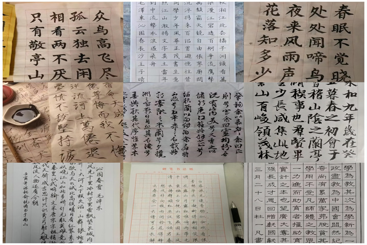 义工站大学生多才多艺,一笔一画间流淌出对汉字之美的独特理解和对传统文化的深深敬意。活动倡导开放创新,鼓励大学生以各自喜爱的字体和形式进行创作,无论是经典的诗词名句,还是富含哲理的古训格言、原创诗词、散文摘录等,皆可成为笔下的主题。楷书的端庄、行书的流畅、隶书的古朴、草书的奔放,无不淋漓尽致地展现出书法艺术的多元魅力,使得同学们在笔墨的流转中,深切体悟到中华文化的博大精深与源远流长。