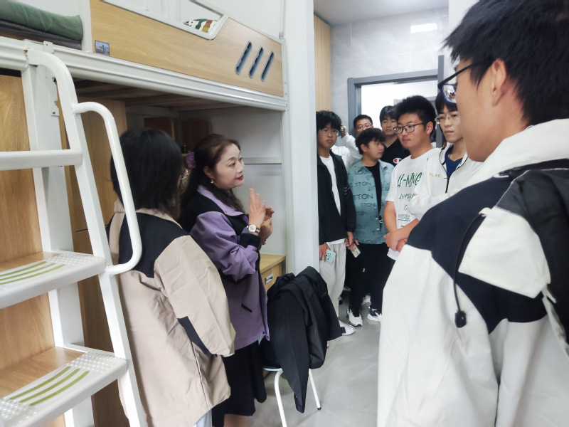 随后,在宿管老师姨的带领下,全体参与者前往指定宿舍进行现场教学。通过实际演示如何有效整理床铺、摆放物品及保持室内空气流通等技巧,使在场学生受益匪浅。特别是针对一些容易忽视的小细节,如定期开窗通风、合理安排垃圾存放点等,都给予了细致入微的指导。
