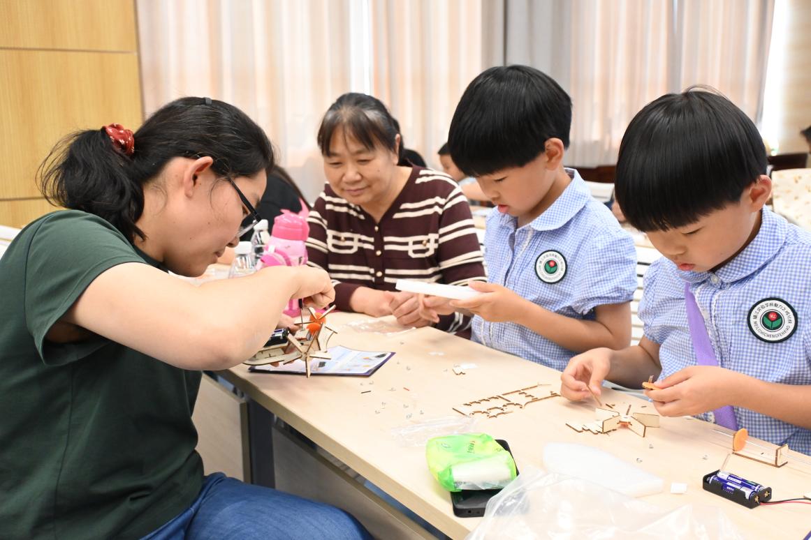 图书馆辅楼屋顶平台上的 “航模竞速赛”。孩子们手持亲手制作的航模,在家长的最后帮助下仔细调试模型。随着发令声响起,一艘艘小船如离弦之箭,在模拟水池中乘风破浪,奋力驶向终点。现场加油声、欢呼声此起彼伏,气氛紧张而热烈。最终,多位小朋友凭借出色的设计构思与精准的操作技巧,脱颖而出,荣获 “造船最佳小能手” 的荣誉称号。一位参与活动的家长感慨道:“孩子不仅科普了知识、锻炼了动手能力,还收获了满满的成就感,这样的亲子活动意义非凡”。