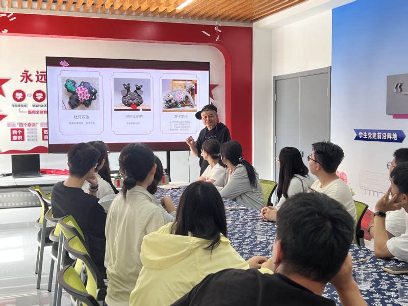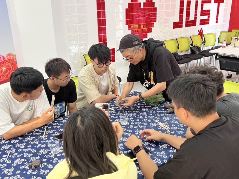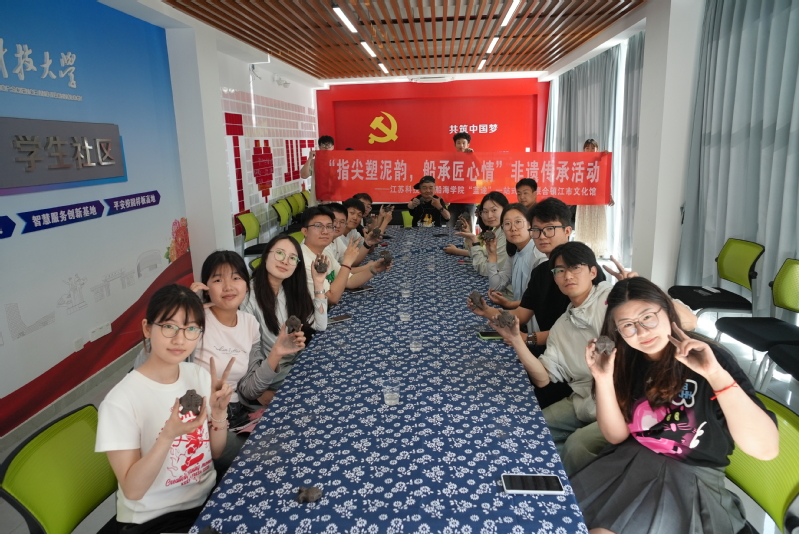 为弘扬中华优秀传统文化,深化学生对非遗技艺的认知与实践,6月19日下午,女同性恋做爱 “蓝途”一站式学生社区联合镇江市文化馆,特邀非遗泥塑传承人周宝康老师,开展“指尖塑泥韵,船承匠心情”非遗传承主题活动。活动由女同性恋做爱 辅导员黄妍主持,女同性恋做爱 师生代表共同参与,在泥与手的碰撞中感受传统工艺的魅力。