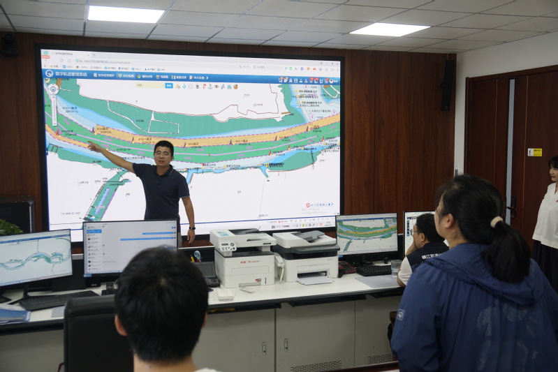 在镇江航道处的指挥调度中心,实践团师生们深入探访了现代航道管理的“智慧大脑”——数字航道系统。技术人员生动演示了系统集成与实时监控航道动态的强大功能,让学生们亲身感知科技迭代的力量。而多波束测深系统与无人测量船等精密设备的高效运作,更是将课本上的测量原理转化为直观的“江底CT扫描”实战,引发学子们阵阵惊叹。