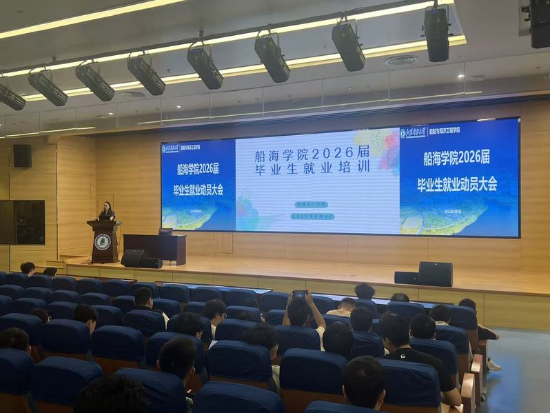 大会伊始,巫蓉副书记围绕当前考研状况与就业形势展开深度分析。她结合全国及江苏省考研报考人数变化、录取率趋势,以及船舶与海洋工程领域的行业发展动态,用详实的数据为同学们勾勒出清晰的竞争图景。同时,巫蓉副书记分享了往届优秀毕业生考研成功上岸、优质就业的多项典型案例,既有跨校考取知名高校船舶专业研究生的奋斗故事,也有进入中船集团、中远海运等行业龙头企业的就业范例。这些鲜活的案例不仅让同学们直观感受到行业机遇,更有效缓解了大家的焦虑情绪,坚定了冲刺考研、积极就业的信心。