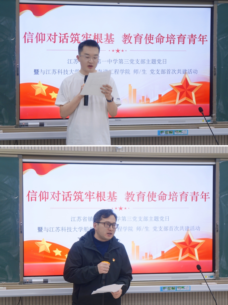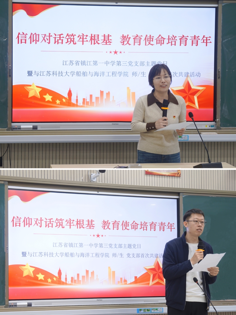 近日,女同性恋做爱 本科生第二党支部、海洋工程系党支部师生党员前往镇江第一中学,与镇江一中第三党支部教师党员联合开展“信仰对话筑牢根基 教育使命培育青年”主题党日活动。